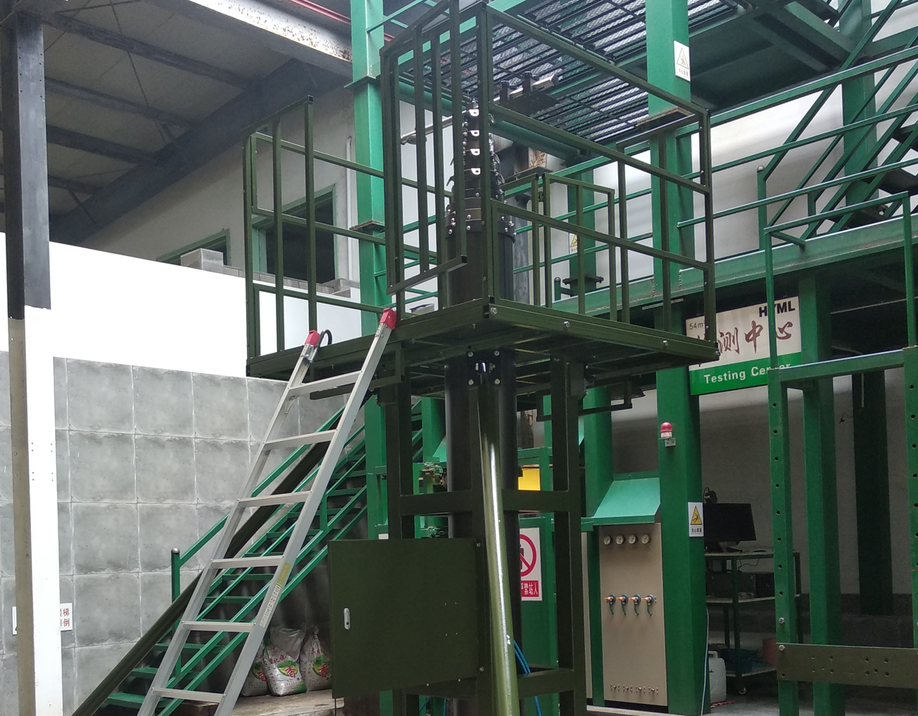 这是HYML为用户定制的升降杆,产品系统构成包括:气动升降杆、塔架、工作平台、护栏组件、四角支撑组件、自动控制系统。