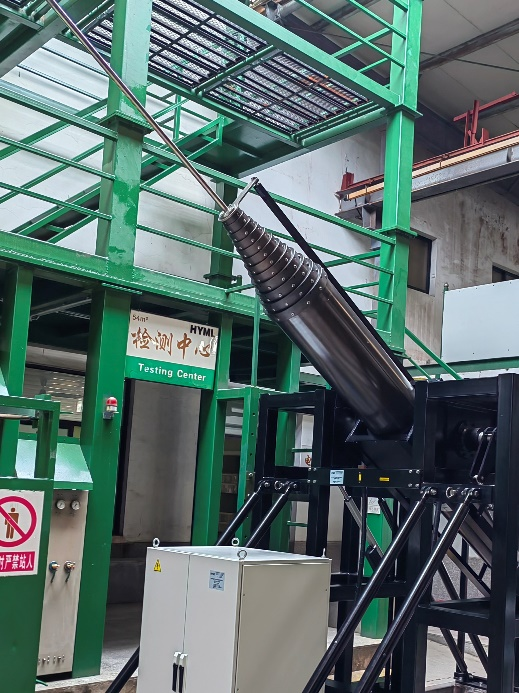 图片中的导电升降杆是国外客户为机场防雷定制的产品,总升高30m,收拢3.8m,顶部安装避雷针即接闪器,在升降杆伸展工作状态下,具有导电功能,取代专用的引下线。升降杆是安装在车辆上,为避免设备运输超高,升降杆在运输收藏时呈水平状态,使用时回转至竖直状态。